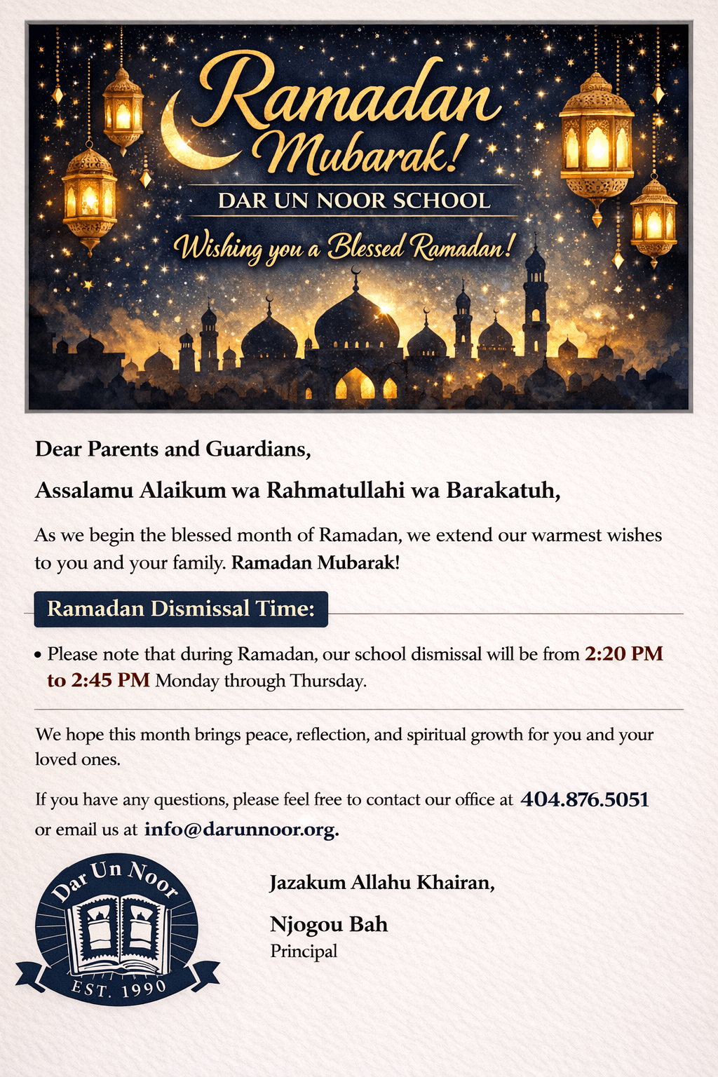 Please complete the Dismissal & Arrival Notice form if applicable (one form per child). Return completed form to the After Care coordinator